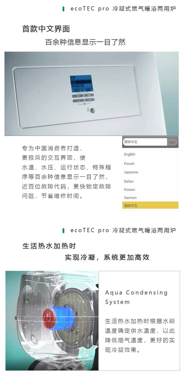 ● 24/28/34kW冷凝熱輸出 ● 采暖和生活熱水需求并重的先進(jìn)解決方案 ● 藍(lán)色背光大顯示器 ● 不銹鋼主熱交換器,耐腐蝕性強(qiáng) ">