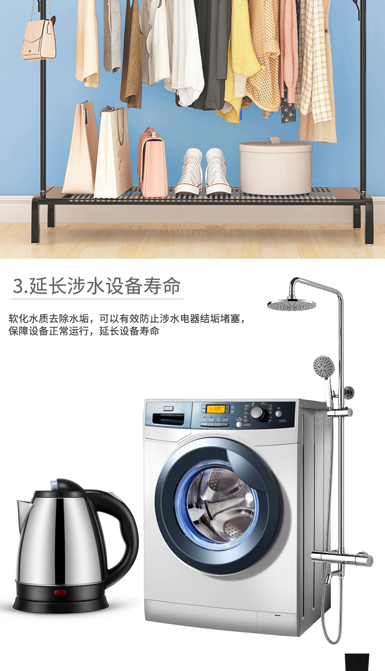 ● 圓弧桶體設(shè)計,外形美觀,在控制安裝空間前提下,有效優(yōu)化儲鹽空間,延長加鹽周期,使用更方便