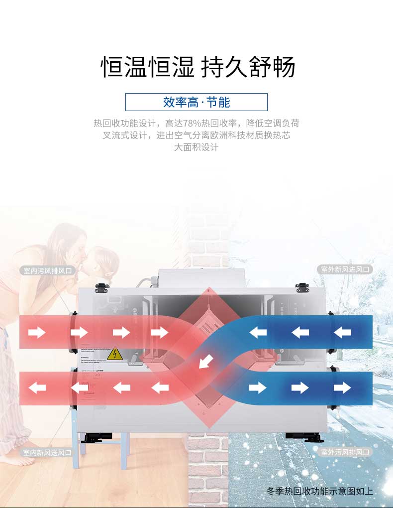 ● 恒溫恒濕 持久舒暢,高達(dá)78%熱回收率,降低空調(diào)負(fù)荷