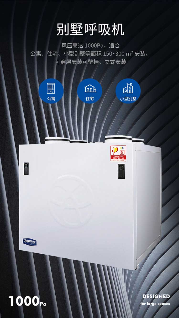 ● 別墅大平層新風系統解決方案,風壓高達1000pa!